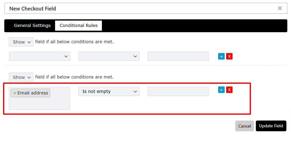 Conditions based on input fields (Text, Hidden, Password, and Textarea)