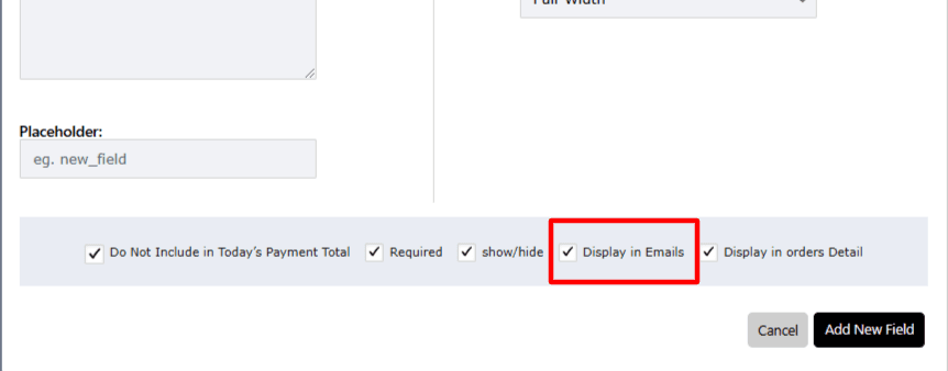 - Check this box to ensure the custom field is included in both the admin and customer emails.